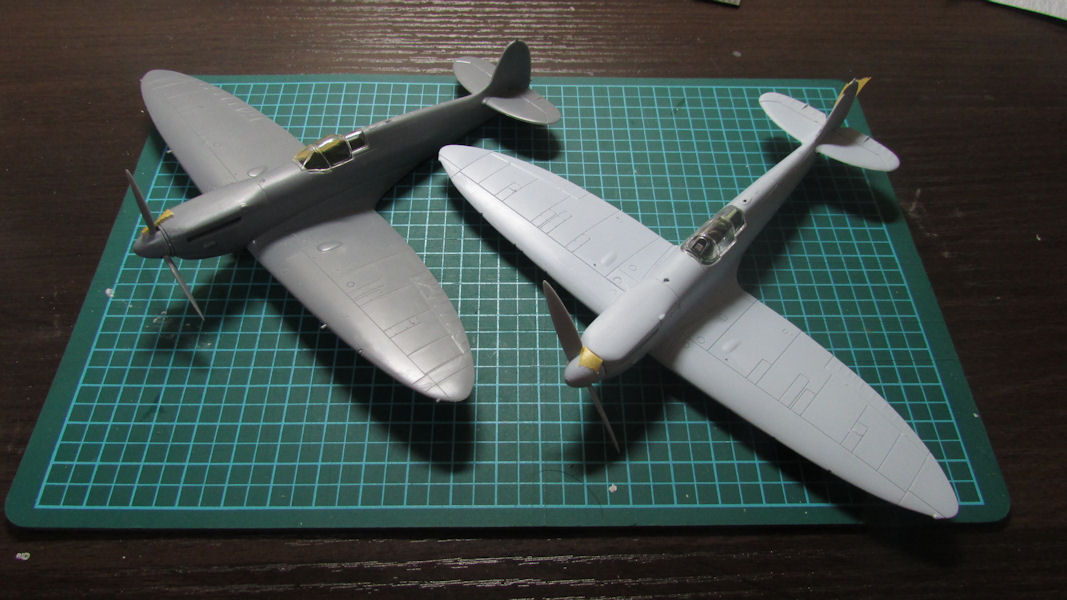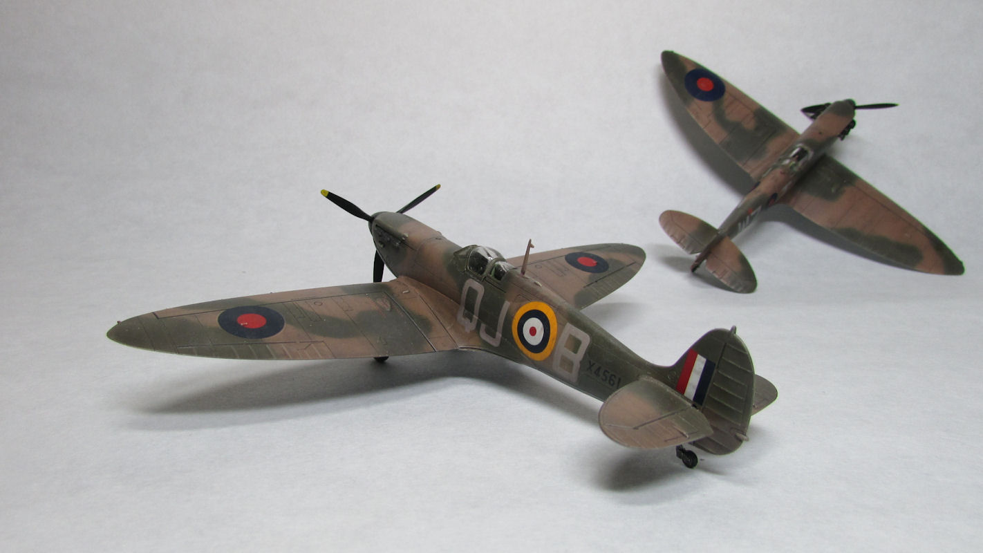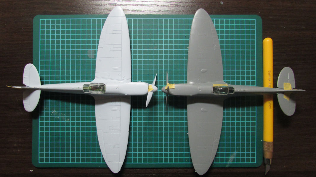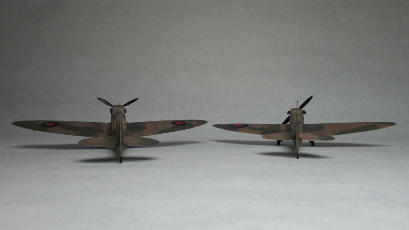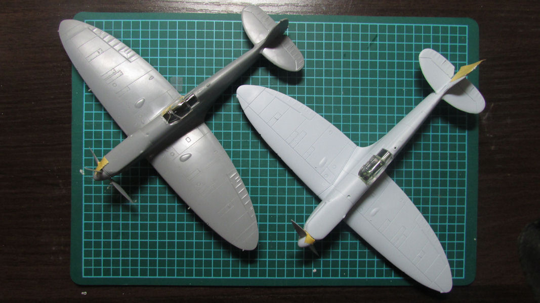 キット評としては、フォルムにこだわりがあったり、2翅ペラのごく初期型スピットを作りたいというのでなければ、タミヤ版の方がいいと思います。