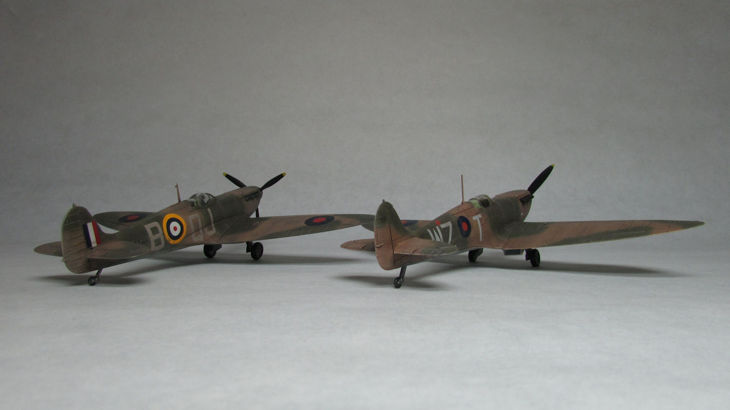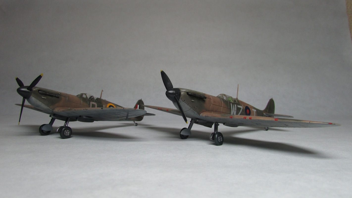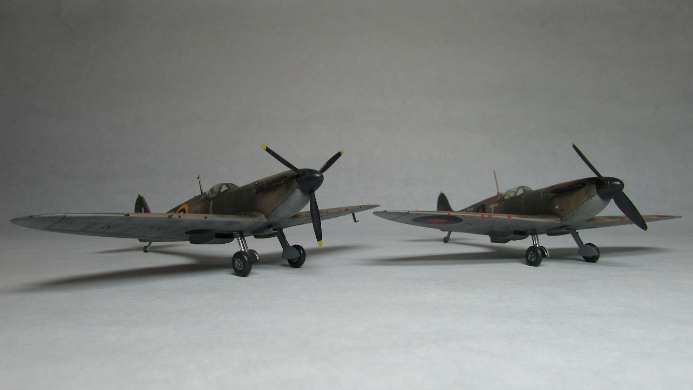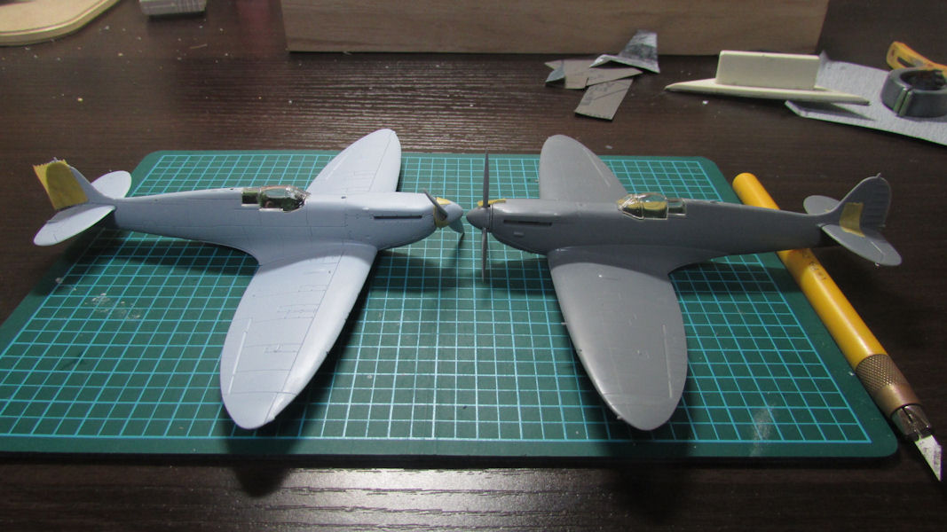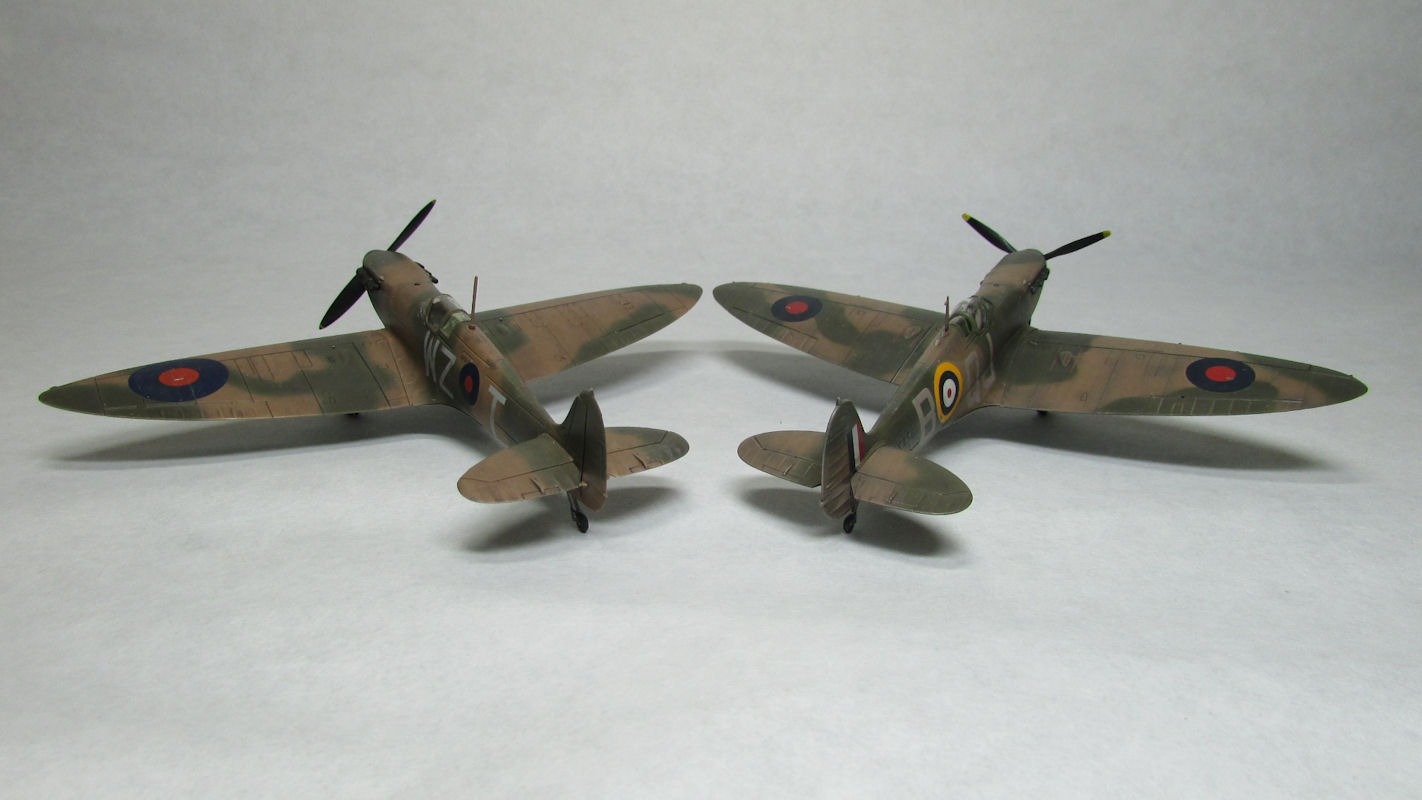 キット評としては、フォルムにこだわりがあったり、2翅ペラのごく初期型スピットを作りたいというのでなければ、タミヤ版の方がいいと思います。