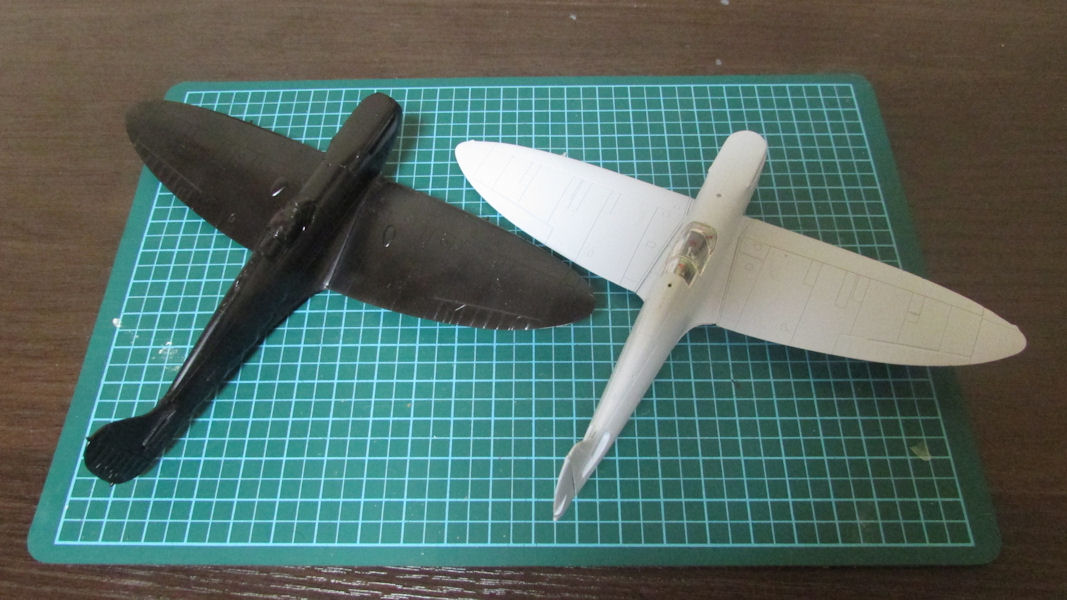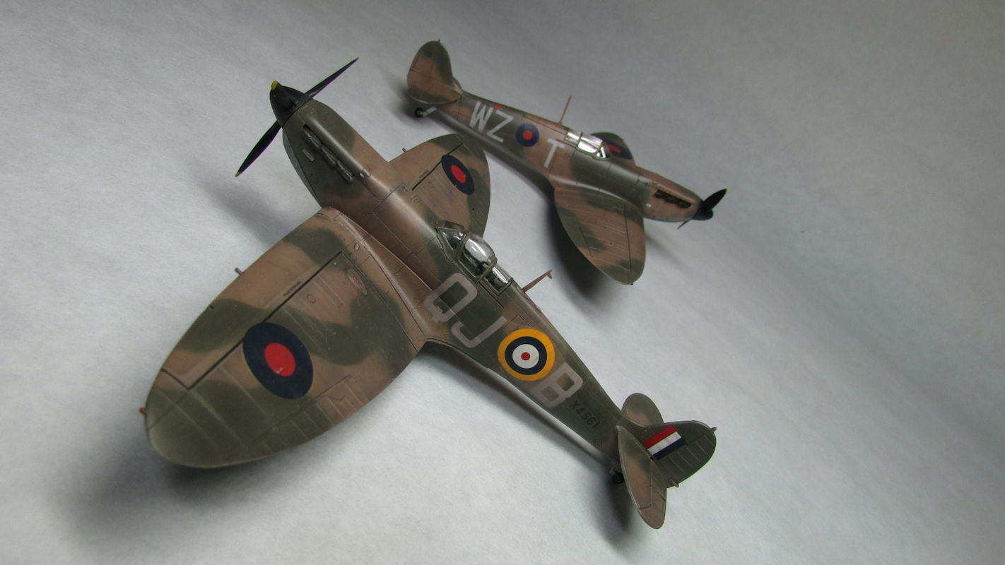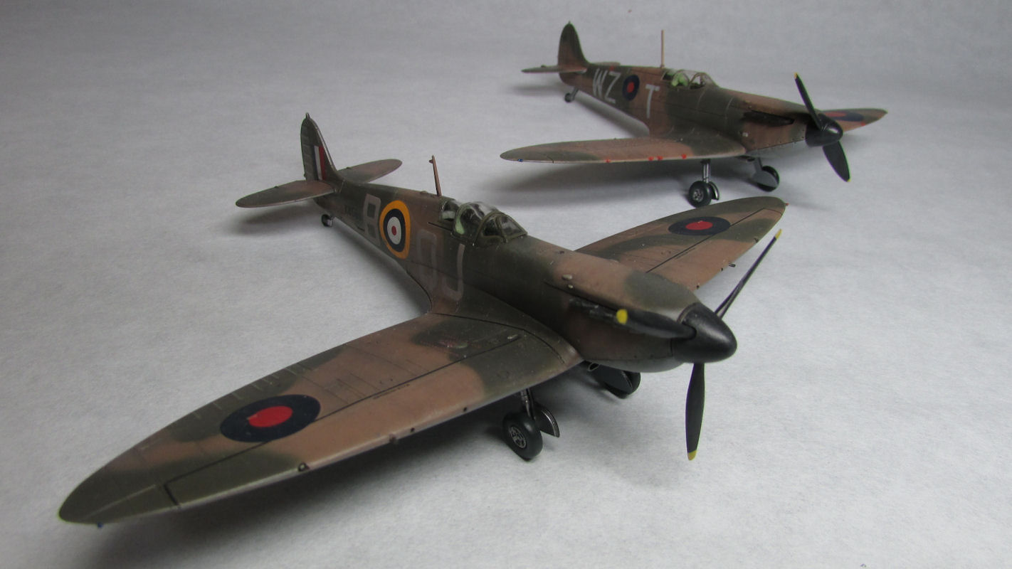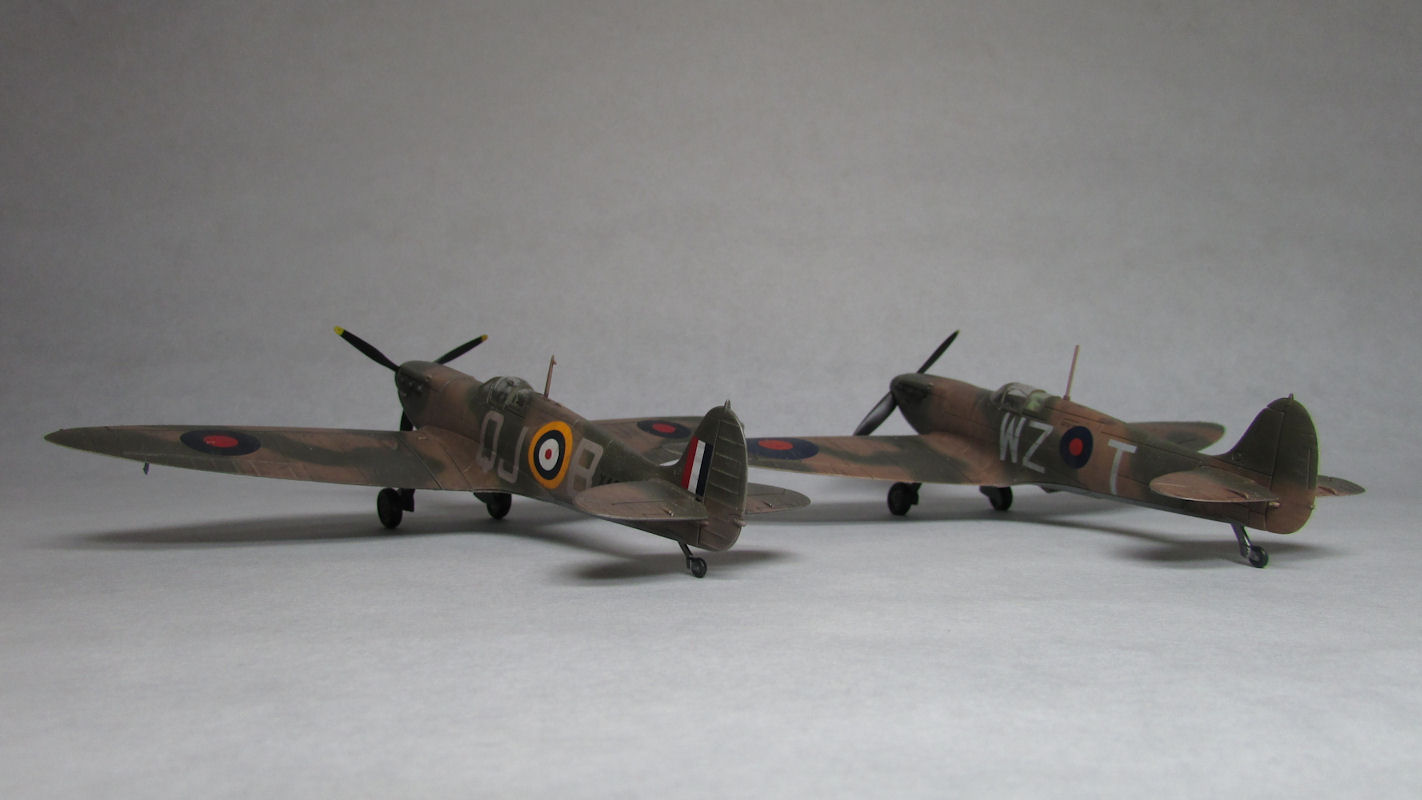 キット評としては、フォルムにこだわりがあったり、2翅ペラのごく初期型スピットを作りたいというのでなければ、タミヤ版の方がいいと思います。