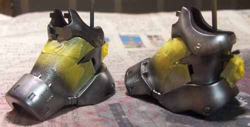 「サフ→黒下地→シルバーで黒を隠蔽&グラデ→装甲色」