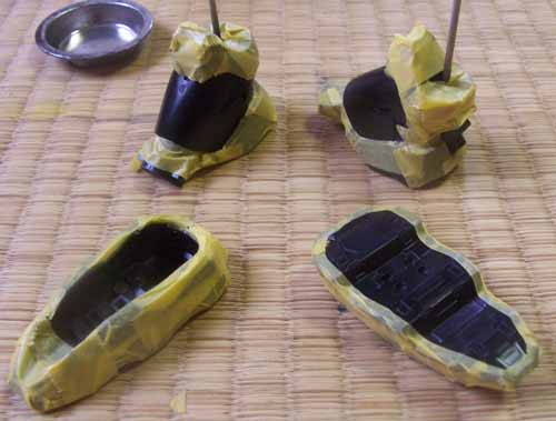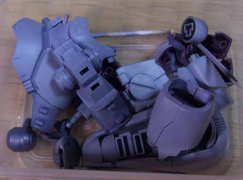 ちなみに、脛部分はかなり厄介でして、脛のシルバーを塗装後にこれをマスキングして、あとから足首付近のレッドのパーツを接着→合わせ目消しって順にしなくてはなりません。