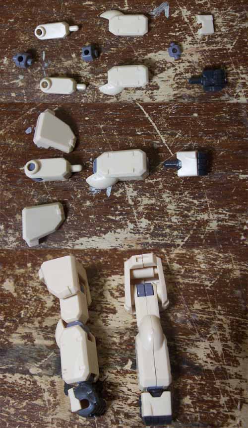 ま、一応理由があって、二枚上の画像で分かるように、腰横アーマーの接続部をノコでぶった切ってしまわないよう、ちゃんと見ながら切るためにこうしたんですけどね。