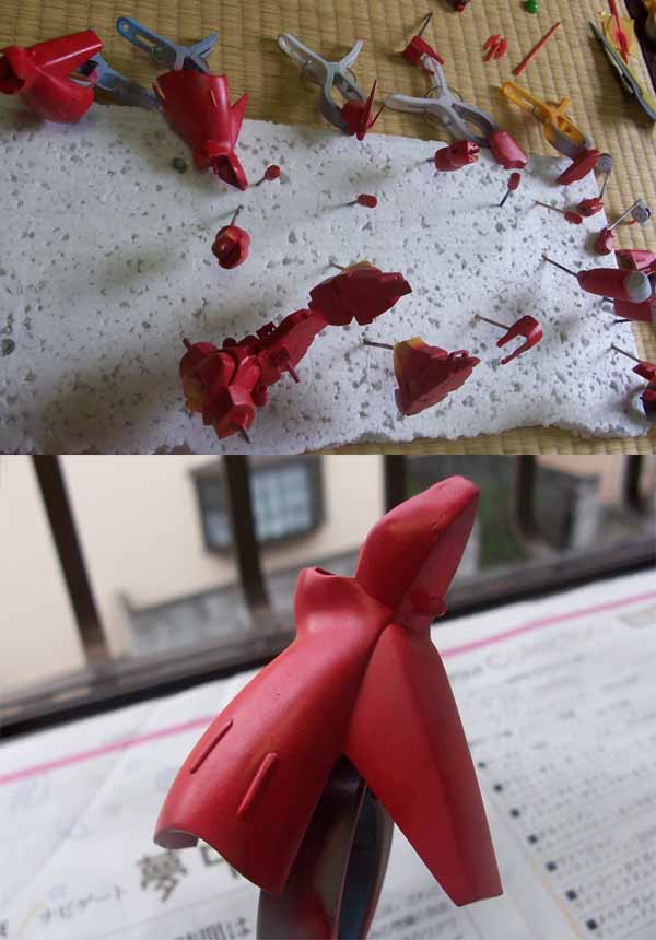 赤がちょっとどぎつくて玩具っぽいし(もう少しオレンジかピンクに振ればよかった)、黒のところは黒すぎ。もう少しグレーっぽい色でやれば、もっと良かった。