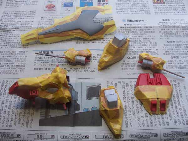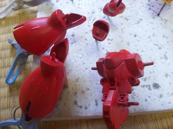 前回、胸の黒い部分をマスキングして赤を塗ったわけですが、そのマスキングテープを剥がしたらあぁた!!