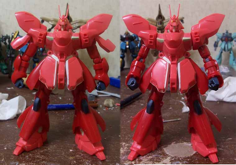 ちなみに、ハイコンのサザビーは現状のバランスよりも少し短い程度です。アレの場合、腰アーマーが綺麗に一個の線として繋がっているので美しく見えるんですね。