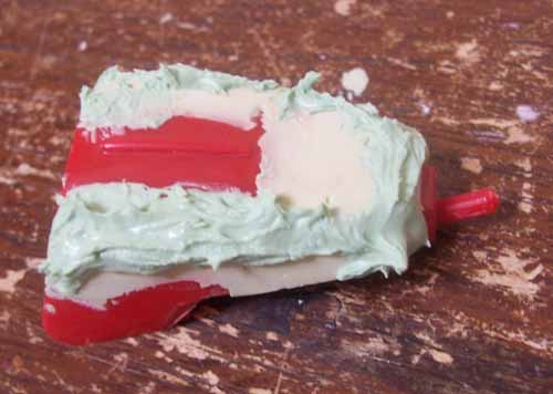 こういった作業にはエポパテの方がいいとは思うのですが、チューブに穴の開いてしまったポリパテを早く消費したいので、今回はポリパテでやります。