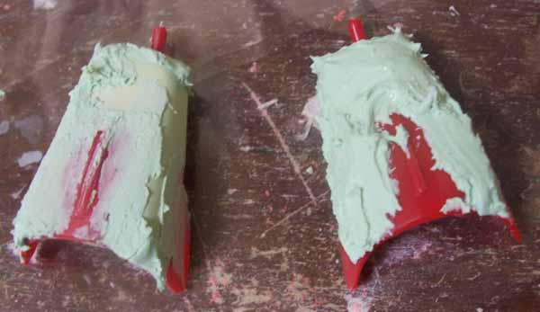 この段階で気が付いたんですけど、ベースになっているプラがしなるので、端っこの薄いパテが割れてしまうみたいです。