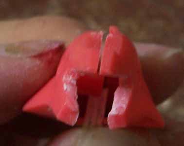 三角形の底辺を3mmに切り取ったのですけど、その部分まで必要なかったらしく、実際には2mm程度しか出っ張らせることができませんでした。