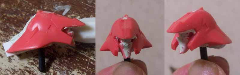 フェイスには、隙間を埋めるためのパテだけですが、ヘルメットにはかなり大量にパテを詰め込みました。
