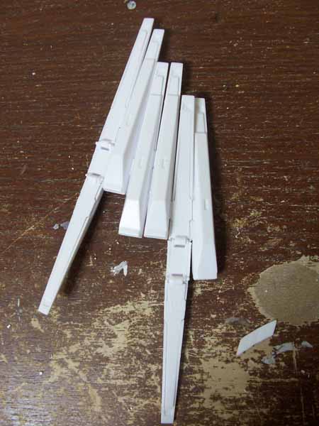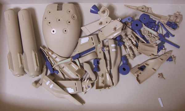 このレベルのバリが至る所にあります。バリだけならまだしも、はめ込みのためのピンとかも大きく歪んでいる場合があるので、困りますね。