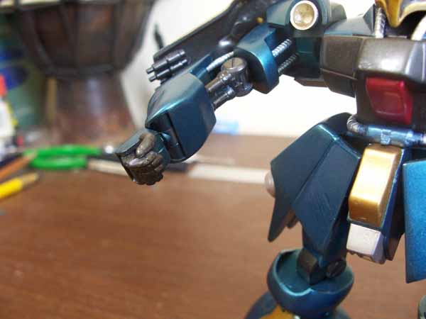 まだポリが露出していますが、これ以上ギリギリまでプラ板を寄せると、どう考えても手首が動かなくなるのでね。