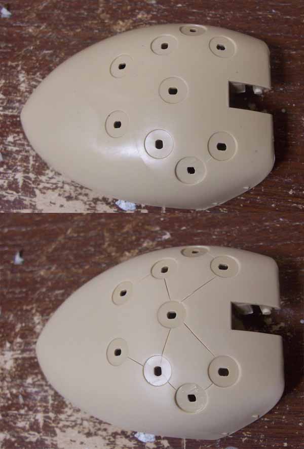 これ、腹のでかいバーニアスラスターなわけですが、上が元の状態ですが、何も入ってないのが分かりますね。