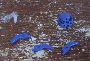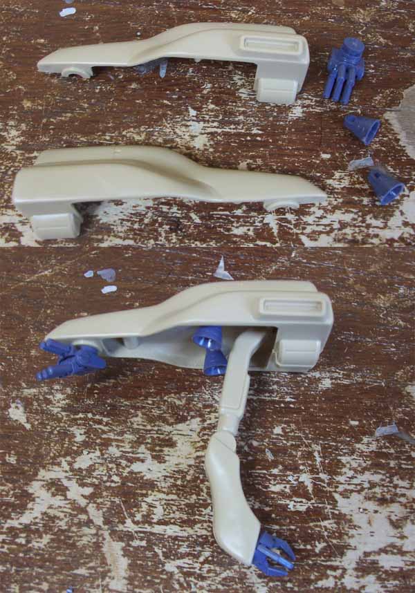 上下にポリの固定ピンがはみ出しているんですよ。そこにパテを刷り込んでやすって・・・。