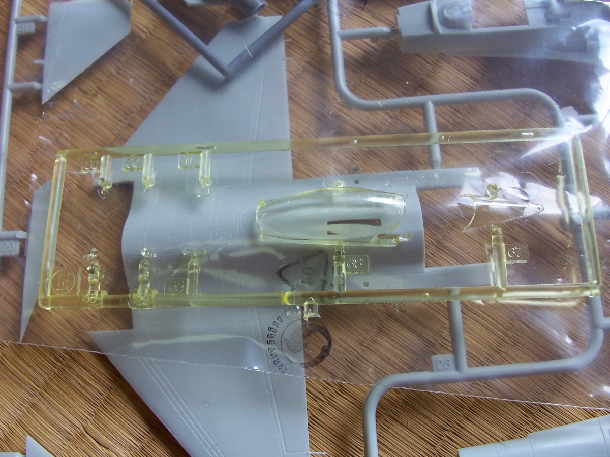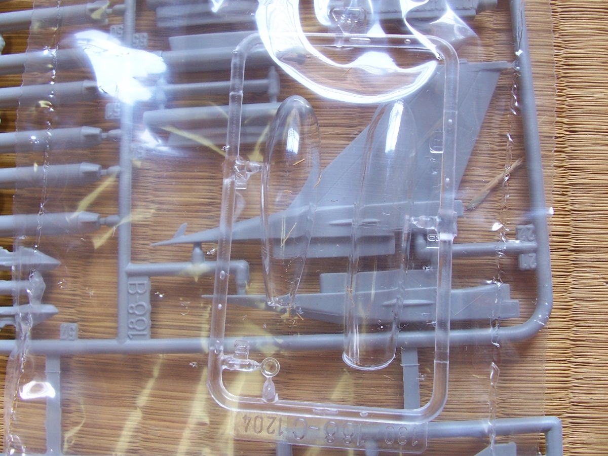キャノピーのフチが変になっているし、正面からの写真を見ると、インテークにぶら下げている・・・なんてったっけ?ランターン?まあ、そいつの表面がガタガタになっているし。