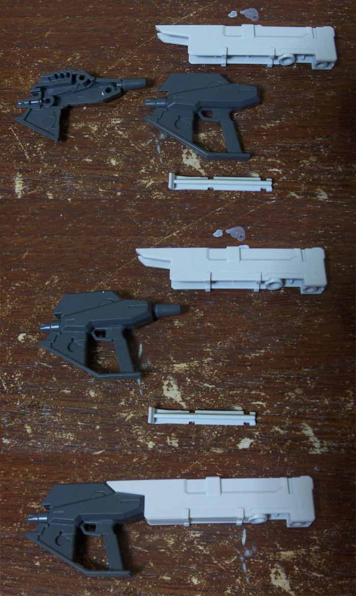左の黒いやつ。これだけでも銃として成立します。ちっこくて、迫力がないですが。