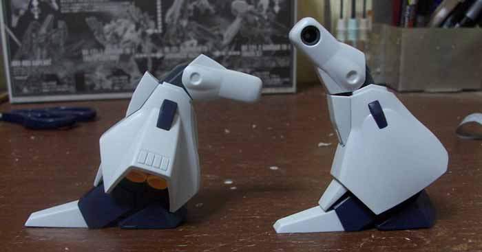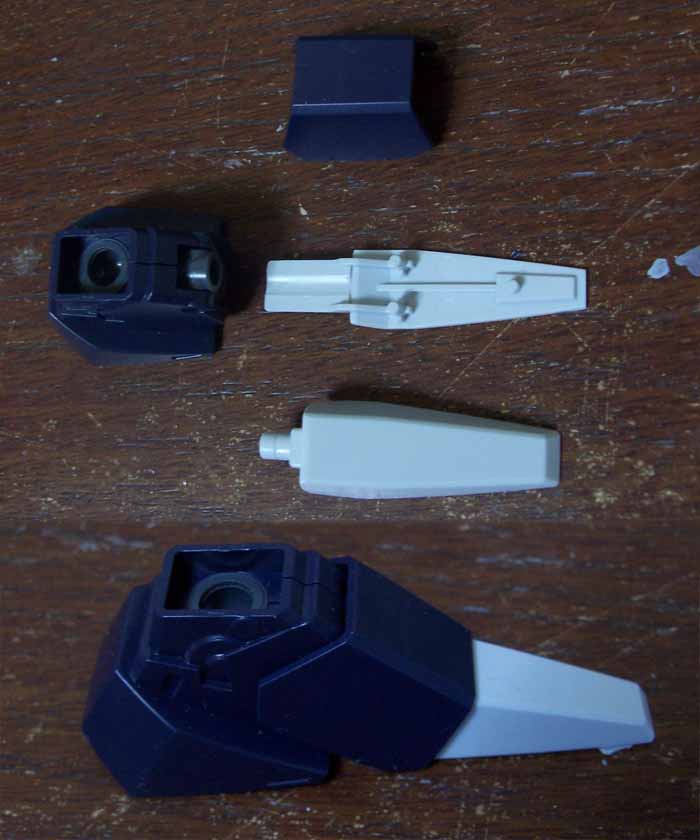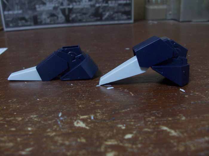 踵に仕込まれていたポリ二つに、爪先と甲の装甲を差し込んで、足完成。