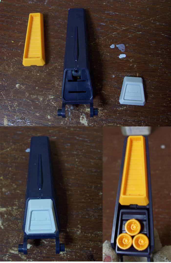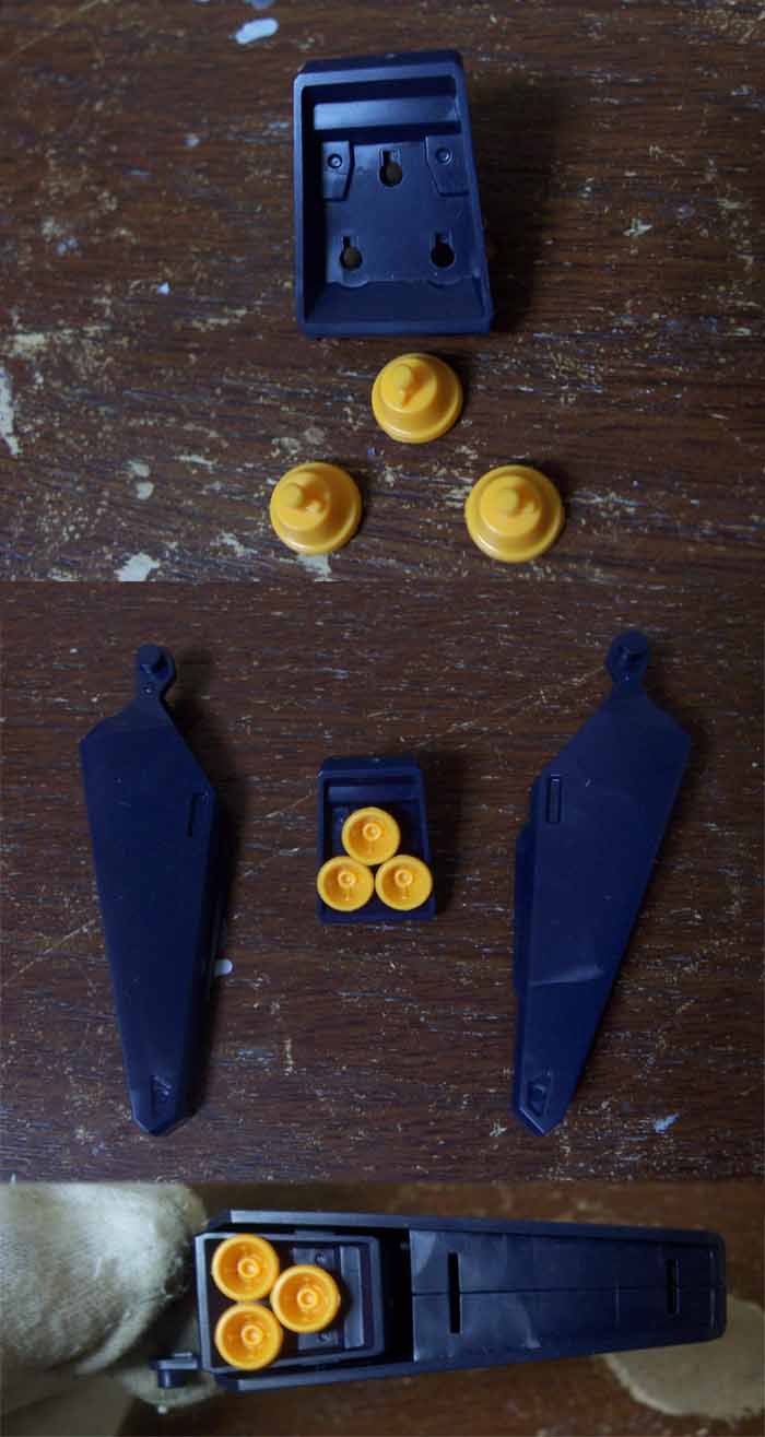 ま、武器の握り手を変えるとき、甲パーツを差し替えるみたいですから、そのためかもしれません。