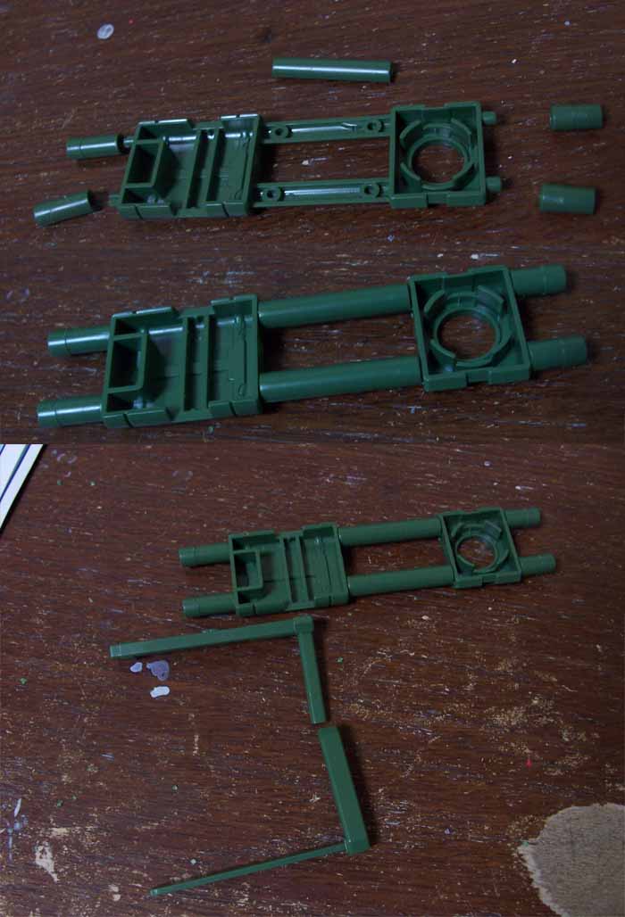でもま、楽しみは取っておいて、パーツがバラバラになって邪魔にならないよう、本体に装備して整理できるように作って行きましょうか。