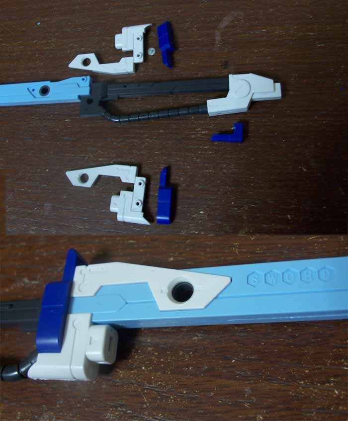 刀身らしきものと、柄の終わりに白いパーツが付きました。