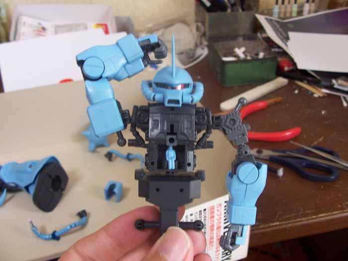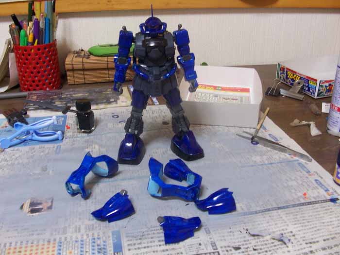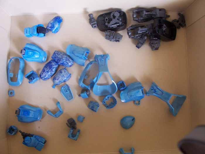 これはいいのですが、胴体が暗く濃い色の分、五体は成型色の水色ではない明るい青にしたかったのです。