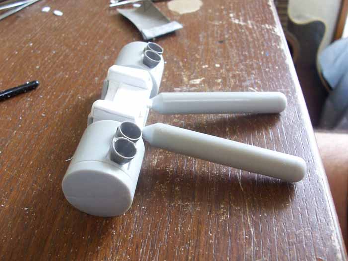 外側のスラスターは、パーツをそのまま接着。かなりせり出した感じにしてみました。