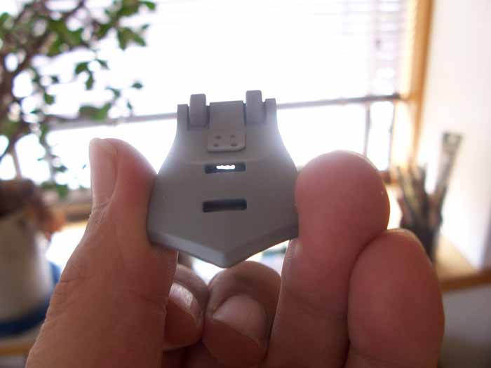 このパーツを仕込むのに、ふくらはぎの下の広がっている装甲が邪魔して、上手く入りませんでした。