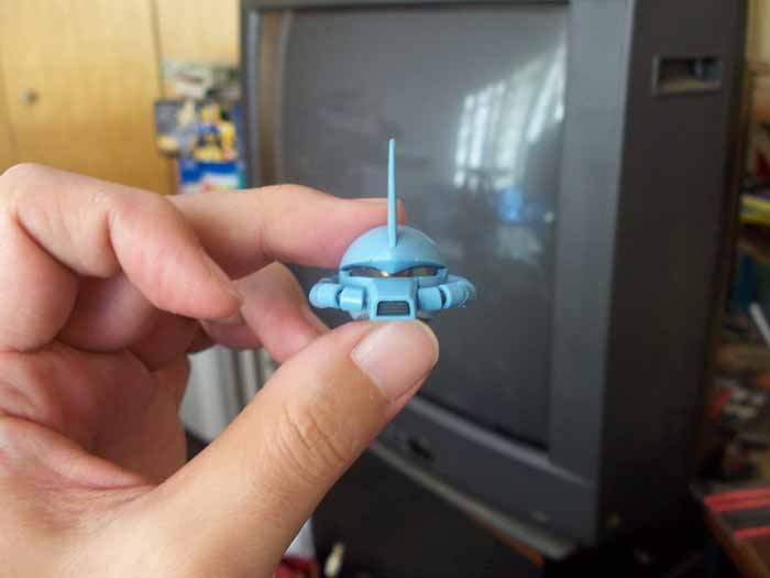 モノアイレール(っていうのか?)が太いので、真正面からみると目つきが悪そうじゃありません。むしろ「んあ?」って感じで、可愛いくらいです。なので、ちょっと凶悪にしてあげる必要がありそうですね。