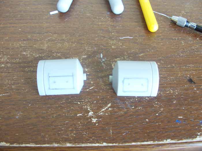 こいつにスラスターを付けるので、くり抜く部分を考え、鉛筆で線を書いてあげます。
