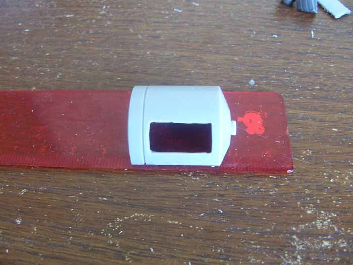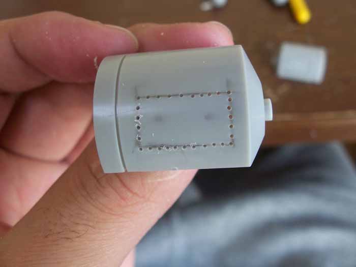 0.4mmのプラ板をはっ付けて、へんなマイナスモールドのついた丸いのをそれにくっつけてみました。