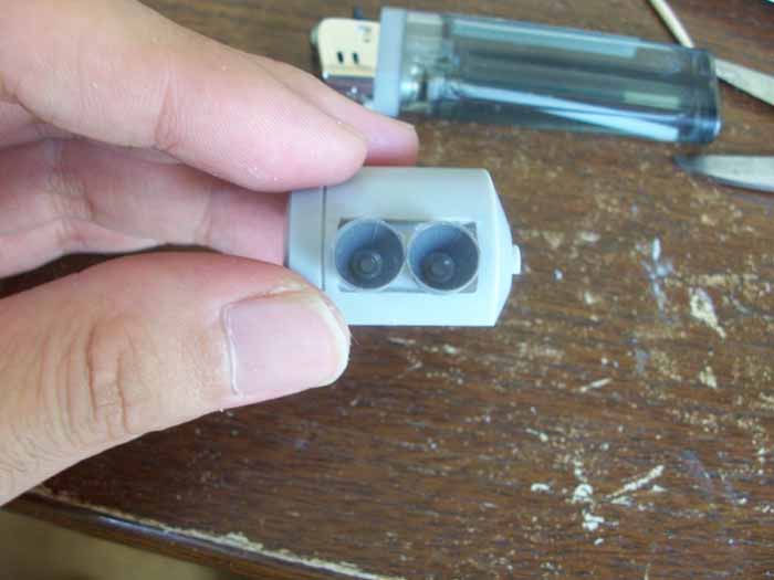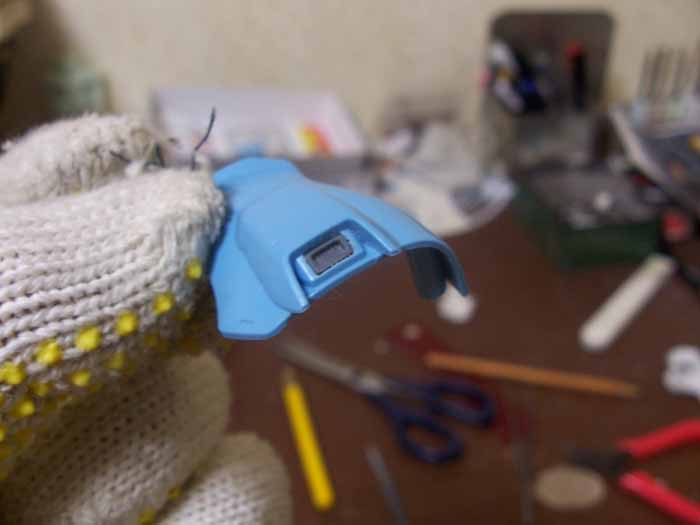 で、穴の大きさを調整してやって、スラスターパーツをはめてあげるとこんな感じに。