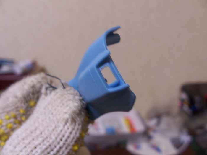 顔は上下で内部のパーツを挟み込むような構造になっているんですが、その下の部分をヤスリで削ります。