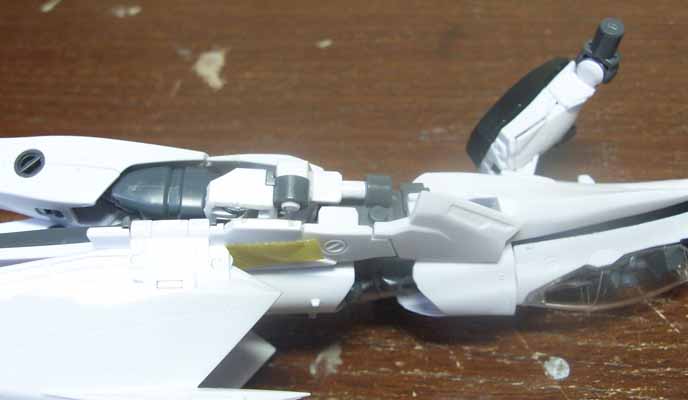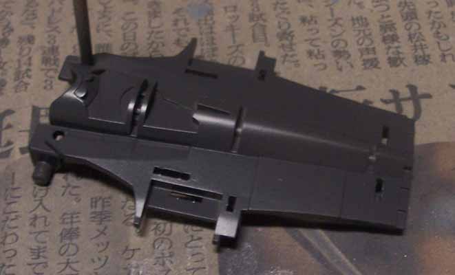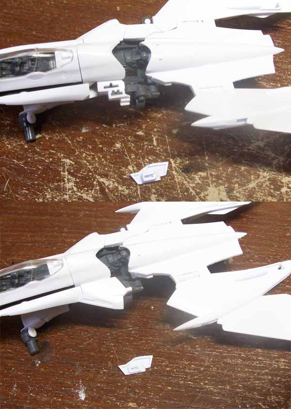 これ、フレームに思いっきり差し込むので、このままではファイター形態での背面に接着できません。