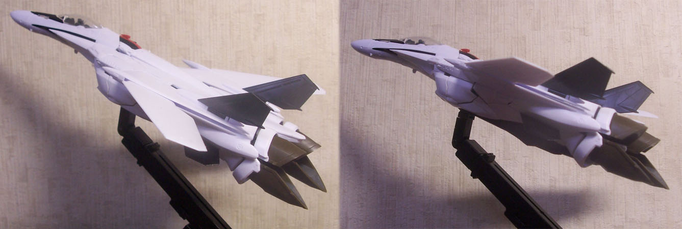 ディテールのみならず、スタイルもプラキットの方がいいかも。アクションフィギュアの方も悪くはないのですが、顔やファイター形態の機首などは、プラキットに比べて劣るかなと。