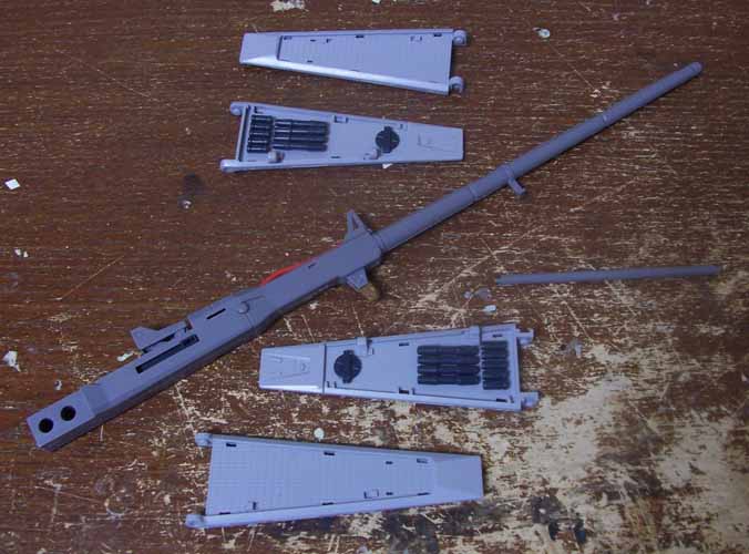 本当はこれだけではありません。ランチャーの後ろの部分やバックパックなどが残っているのですが、塗装の便を考え、一回目はこれでOKとしました。