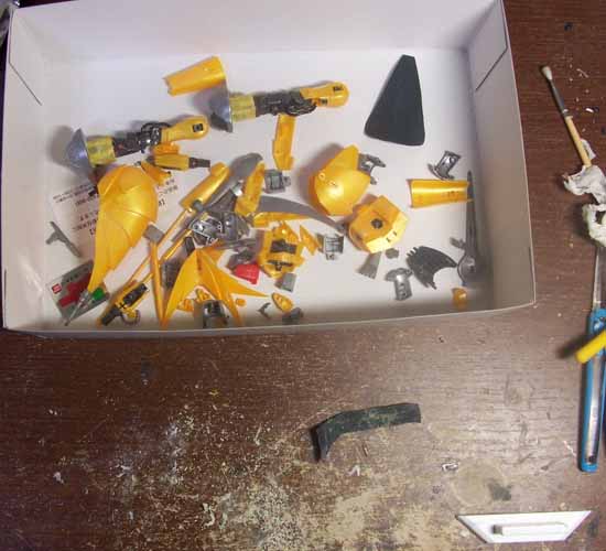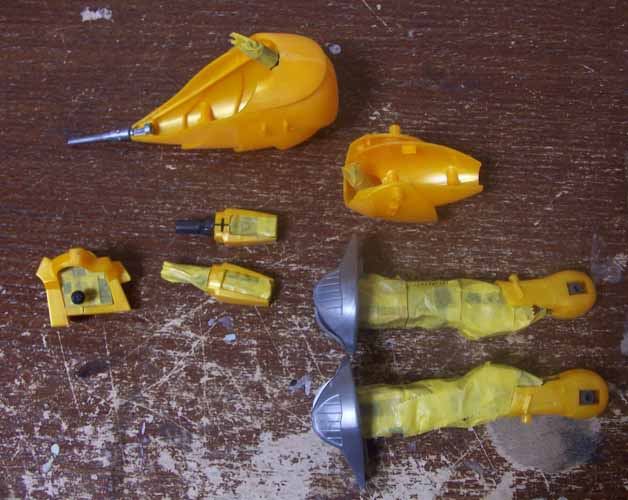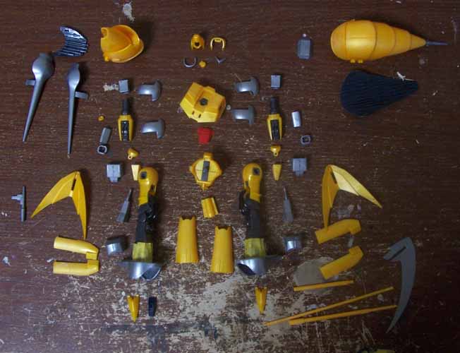 で、このキット。設定では金色ということを成型色で再現するため、パーツの成型色は金属粒子の入った黄色になってます。