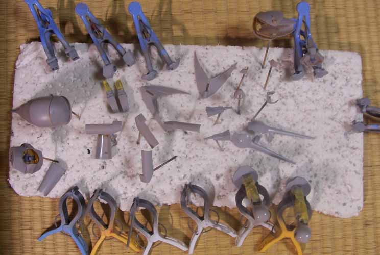 割とパーツが多く、また細かいので疲れますが、小さなパーツは全面磨きではなくゲート跡だけやすれば大丈夫だと思います。