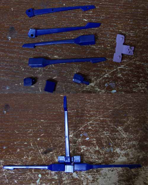 本体が完成したので、次は付属物、バックパックや武器などを組みます。