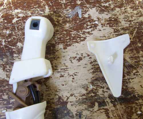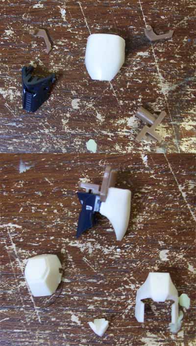 なので、ちょっと動かすと、ランチャー部・チンコ部双方の接続部が外れます。ピン!って感じで抜けるんですよ。
