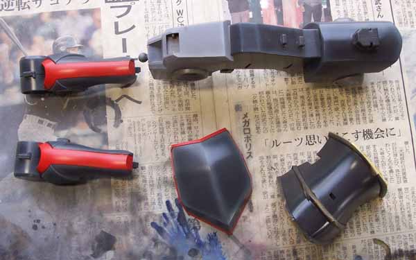 あとは、一部合わせ目消しをして、黒鉄色と赤をそれぞれ下地黒から塗って、エアブラシ塗装はお仕舞いですな。