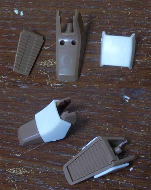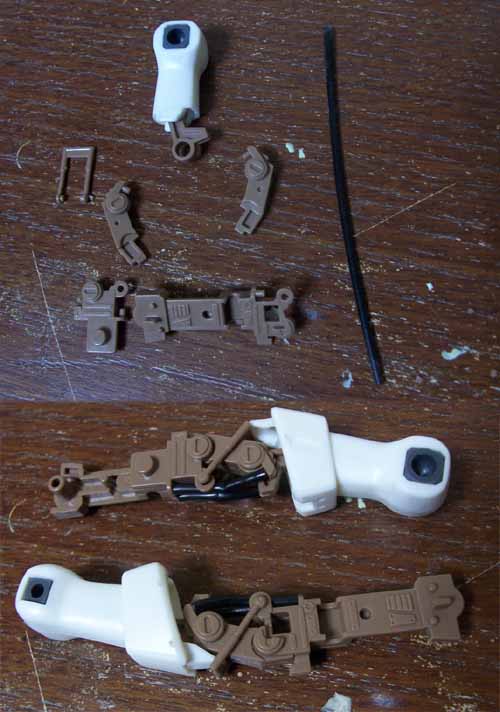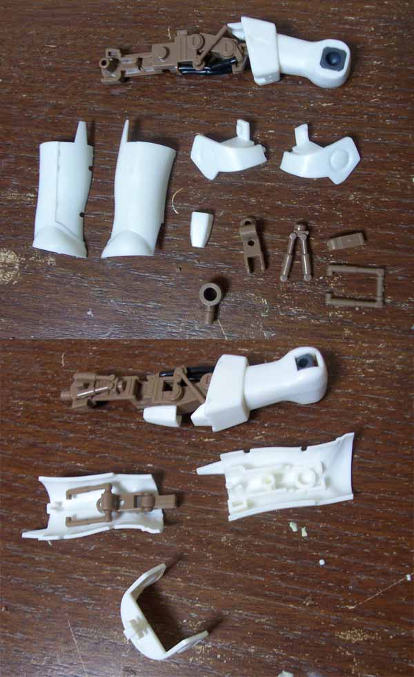 このキットの初版は2001年だったかと思いますが、そのくらいの時期のHGは合わせ目が各部分に残っているのが当たり前ですから、今よりもパーツが少ない分、基本工作の手間はかかるわけです。
