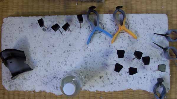 画像に写っているのがすべてではありませんけど、ともかくゴールドに塗るパーツの下地黒を塗りました。