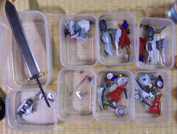 刀を持つ手は右手にしか付いてませんし、斬艦刀の大きいのは必ず持たせたいしで、結局作ってもちっこい方は持つことができないんですね。
