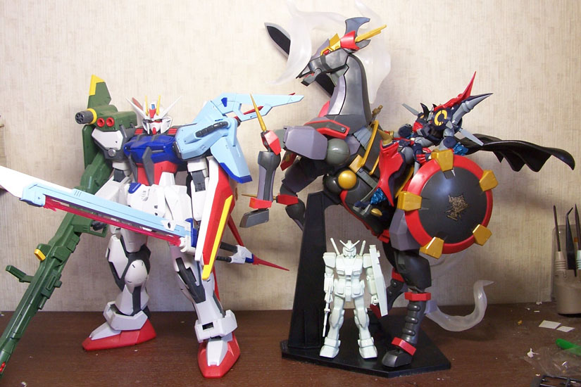 一緒に写っているのは、FG1/144ガンダムさんと、一年と数ヶ月ぶりに登場の1/60のストライクガンダムさん+ストライカーウェポンシステムですね。