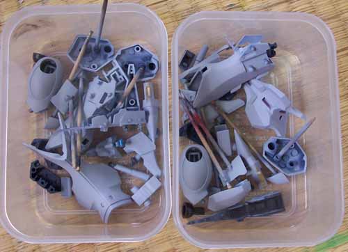 これから再度ダイゼンガーさんをばらし、ついでにアウセンザイターさんもばらして接着し、その接着硬化時間の間にダイゼンガーさんを塗装し、ダイゼンガーさんが完成したらアウセンザイターさんの基本工作に入り、そして塗装。