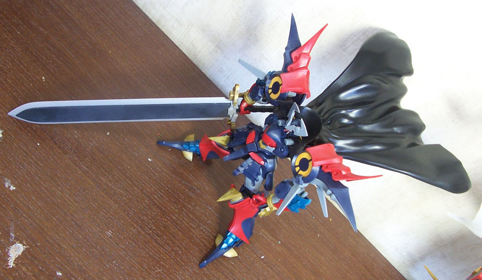 簡単です。マントをカベに引っ掛けているからです。それが無ければ、ダイゼンガーさんは猛将ではなく敗将のように、地に膝をついてしまいます。膝ではなく背中か・・・。