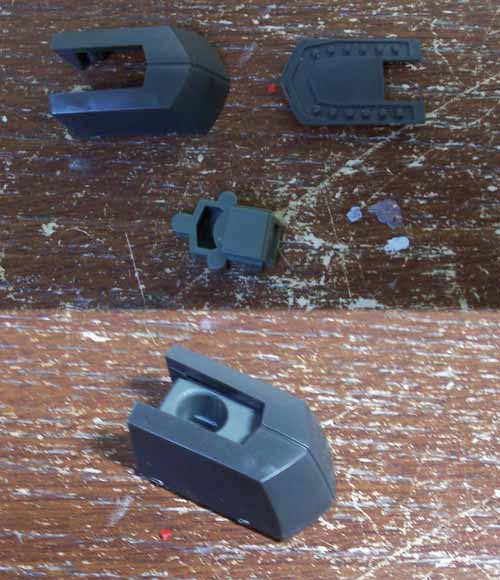 この部分は前脚とは違い、色違いのパーツに依る前後挟みこみで足首間接固定なので、合わせ目がないです。