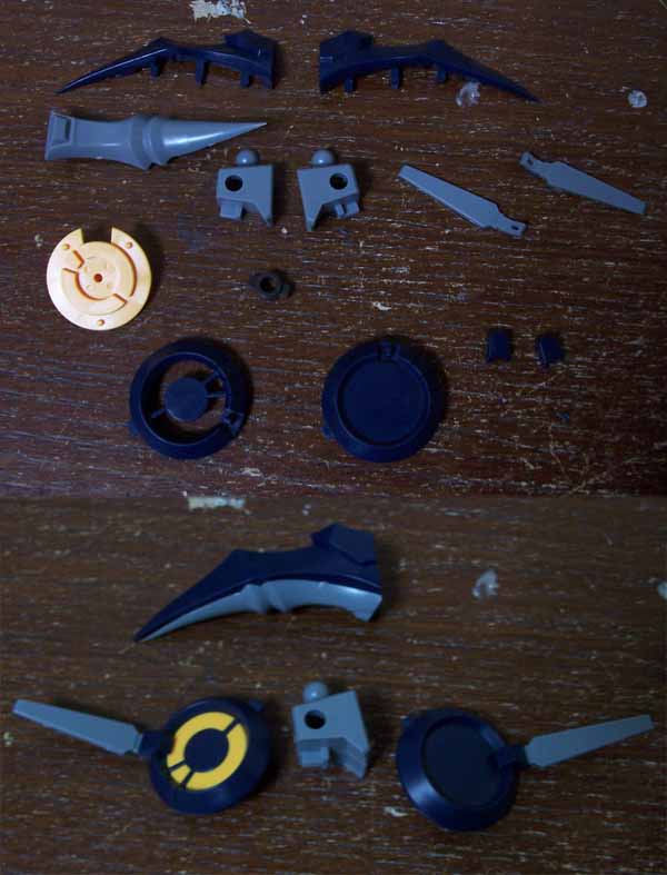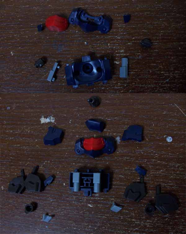 大体は簡単に消せる部分ですが、前腕装甲(メタリックブルーのパーツ)の合わせ目はなかなか面倒臭そうです。