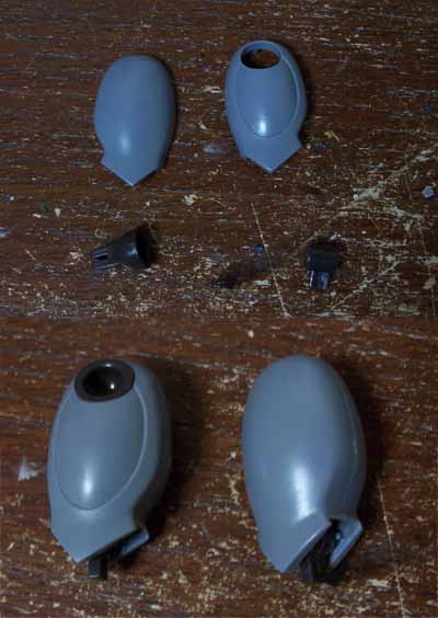 左右分割なのでグルっと合わせ目がありそうですが、実際には前部は凹モールドとなっているため、消すべき合わせ目は後ろだけです。