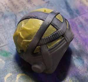最初はヘルメット。まずはメットの色を塗装し、マスキングでベルトの部分を塗装していきます。