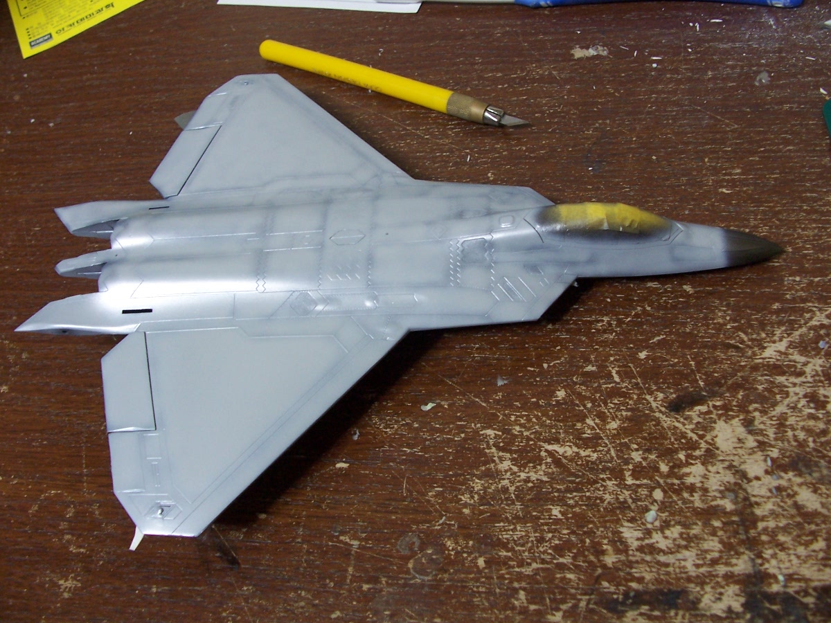 下地黒を塗装し、そこにフジミのF-22のカラー指定に従い、混色→塗装。